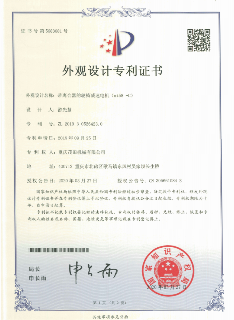 重慶茂田機(jī)械有限公司是國家級小巨人企業(yè)、國家高新技術(shù)企業(yè)、重慶市專精特新企業(yè)、重慶市知識(shí)產(chǎn)權(quán)優(yōu)勢企業(yè),致力于現(xiàn)代化山地農(nóng)業(yè)機(jī)械、各類非標(biāo)減速電機(jī)及其控制系統(tǒng)的研發(fā)、生產(chǎn)、銷售。擁有重慶市市級研發(fā)平臺(tái)1個(gè) 目前研發(fā)、生產(chǎn)、銷售產(chǎn)品廣泛應(yīng)用于農(nóng)業(yè)機(jī)械、醫(yī)療康復(fù)設(shè)備、交通代步工具、智能搬運(yùn)設(shè)備、以及機(jī)器人動(dòng)力系統(tǒng)等領(lǐng)域。我們的產(chǎn)品具有完整的自主知識(shí)產(chǎn)權(quán),擁有多項(xiàng)專利技術(shù)及“重慶